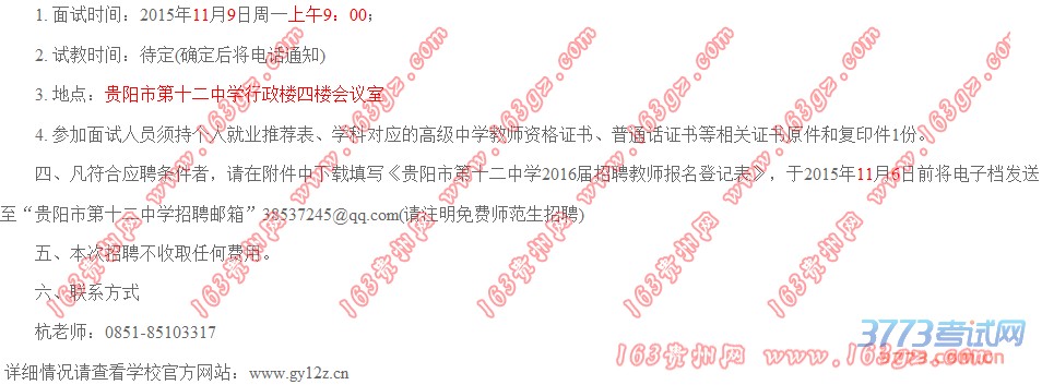 [图文]2016贵阳市第十二中学免费师范生招聘信息(二)