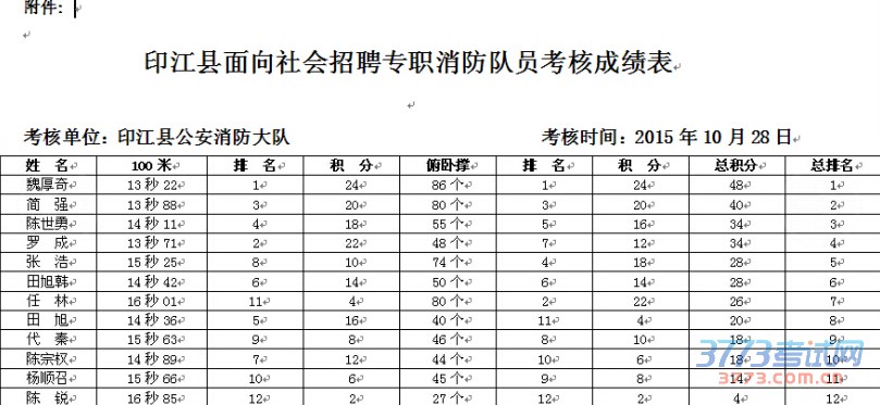 附件:印江县公安局面向社会招聘专职消防队员考核成绩表