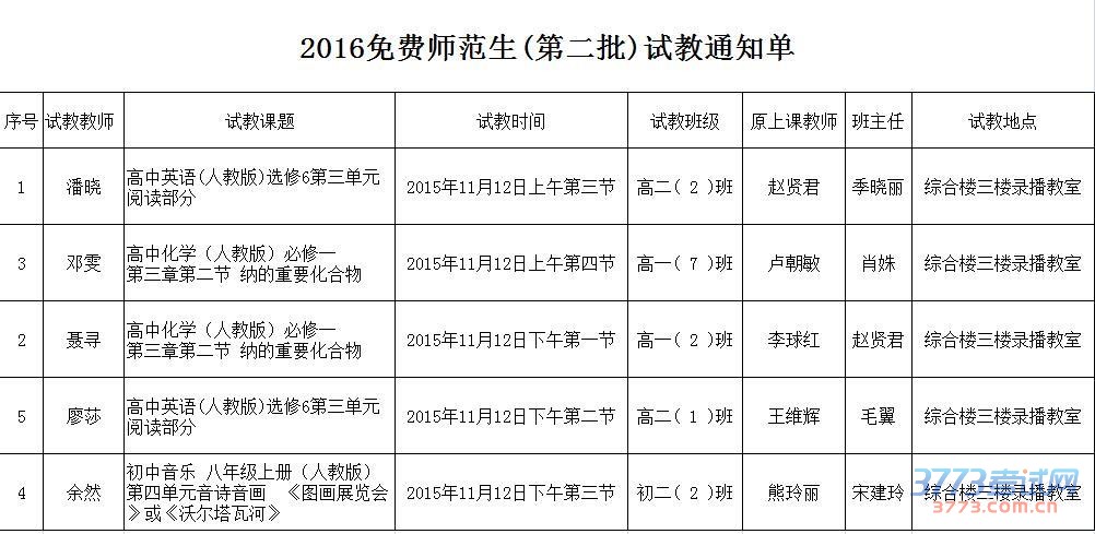[图文]2016贵阳市第十二中学免费师范生(第二批)试教通知单