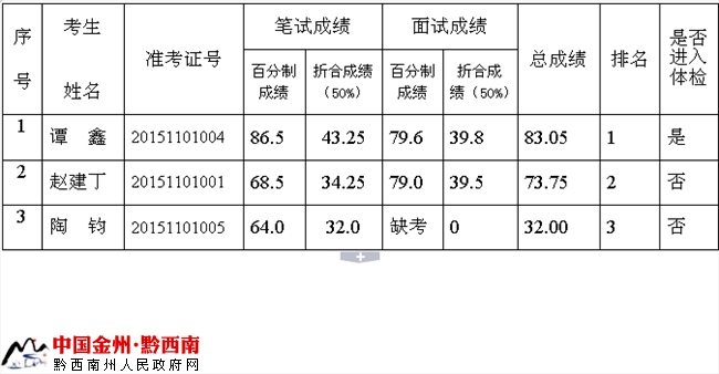 黔西南州商务和粮食局2015年公开考调办公室文秘人员总成绩公告