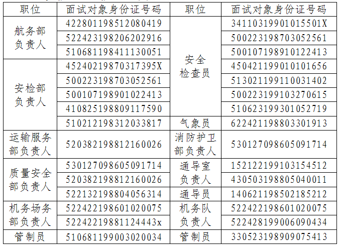 3、请面试对象持本人身份证原件及近期小二寸免冠照片于2015年12月14日下午2:00-5:30到民航贵州空管分局培训中心报到并领取面试证(逾期不报到者视为放弃面试),15日参加面试,面试合格人员16日参加体检(持有Ⅲa级体检合格证在有效期内的人员需提交Ⅲa级体检合格证,不参加体检)。