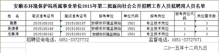 [图文]安顺市环境保护局所属事业单位2015年第二批拟聘用人员公示