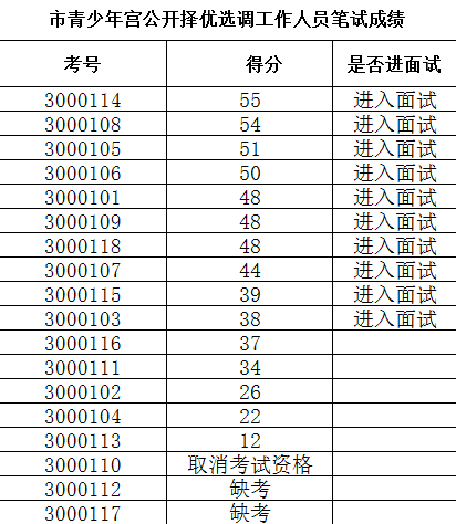 2:遵义市青少年宫择优选调工作人员(01职位)笔试成绩表