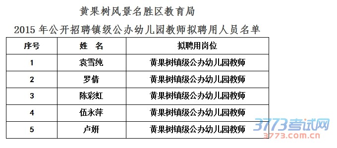 [图文]黄果树风景名胜区教育局2015年镇级公办幼儿园教师拟聘名单