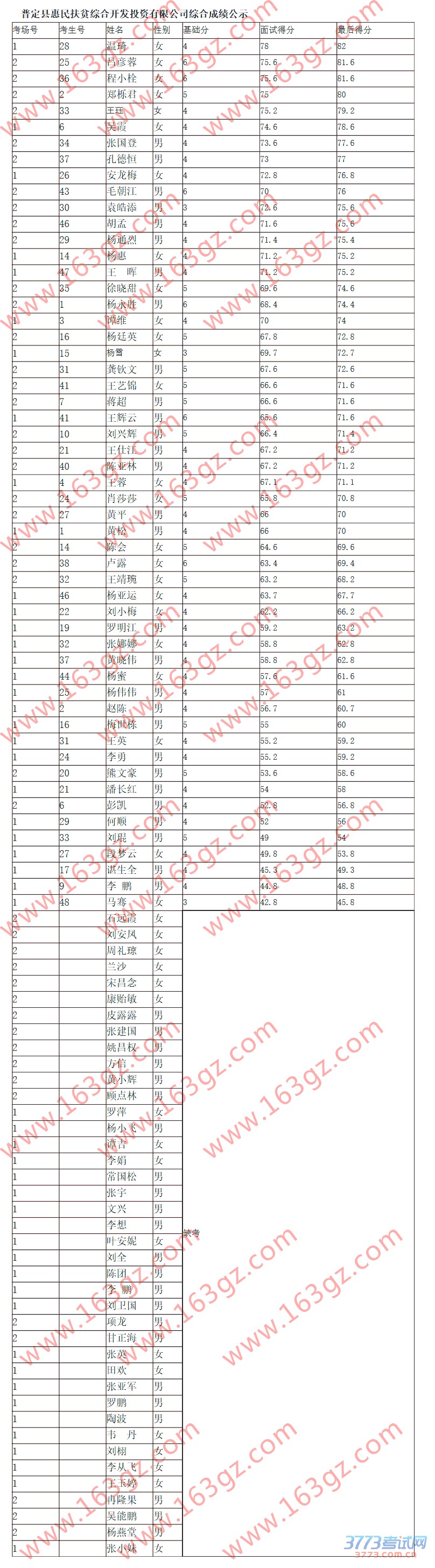 [图文]普定县惠民扶贫综合开发投资有限公司2015招聘综合成绩公示