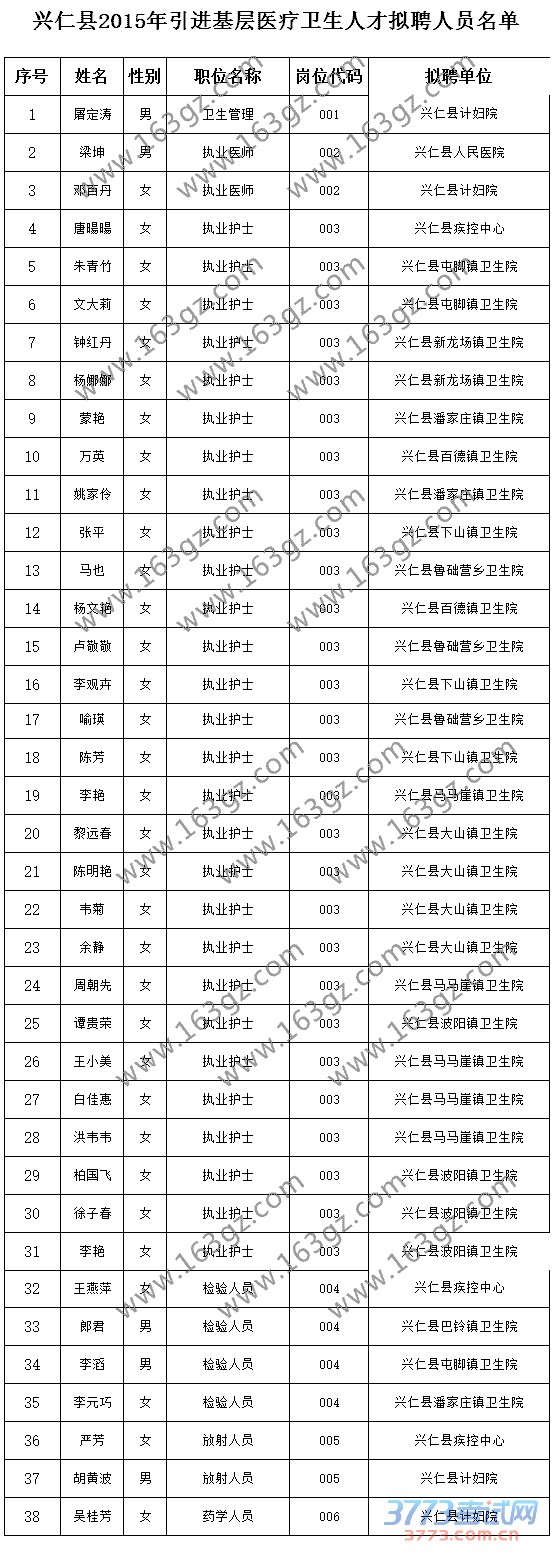 [图文]2015年贵州兴仁县引进基层医疗卫生人才拟聘人员名单公示