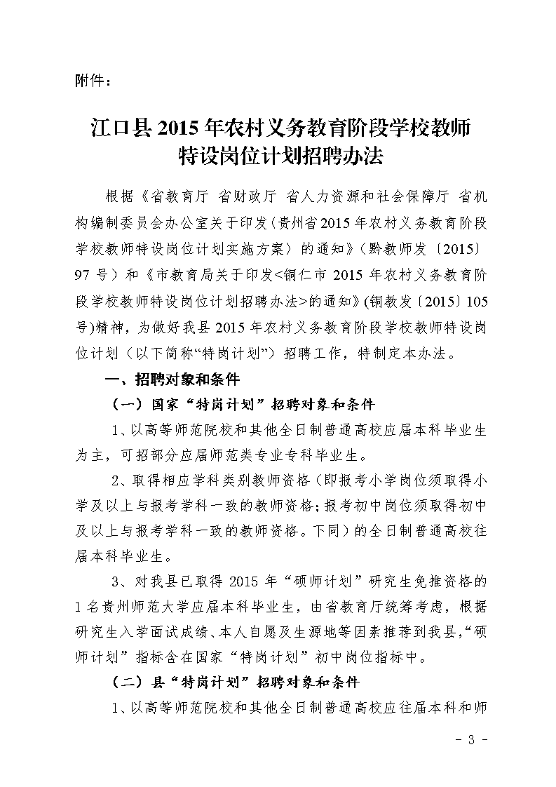 [组图]贵州江口县2015年农村义务教育阶段学校教师特设岗位计划招聘办法细则
