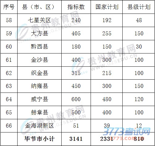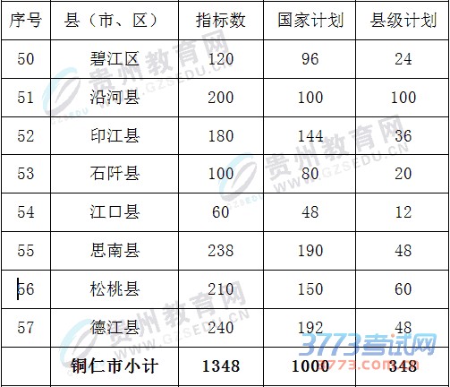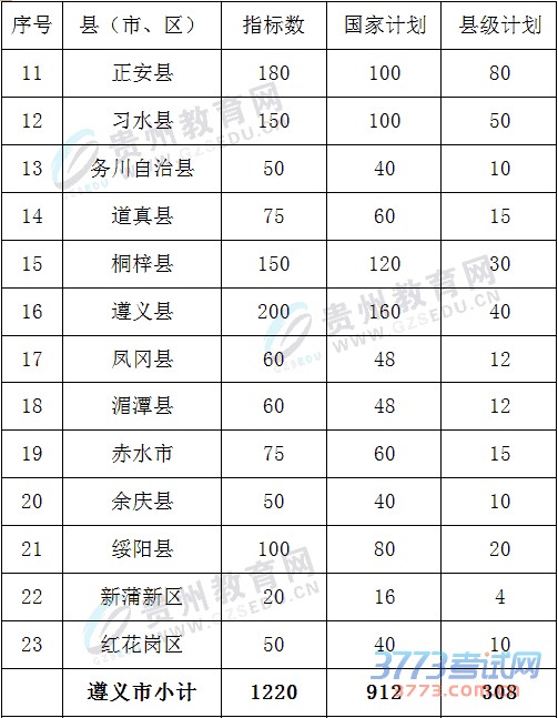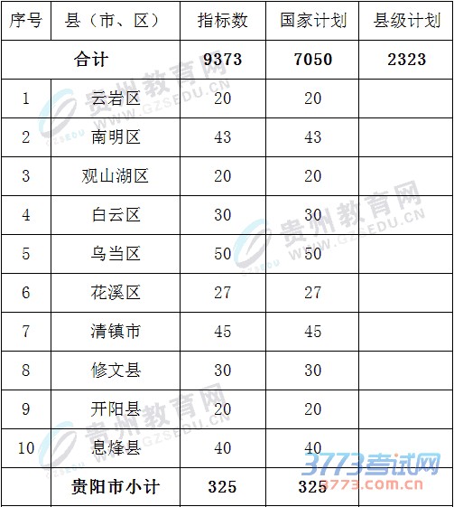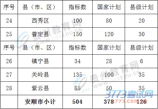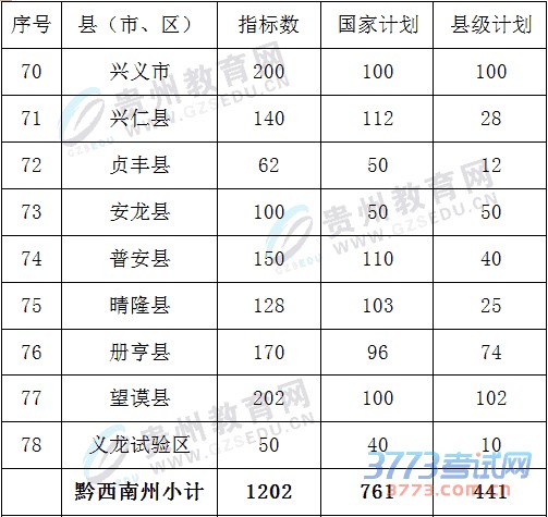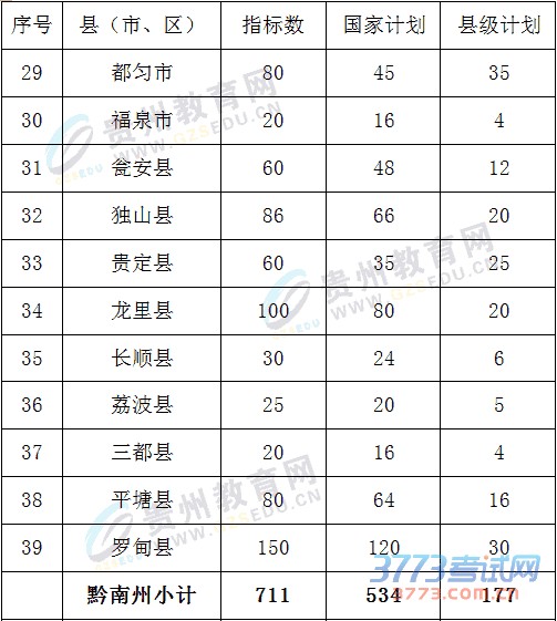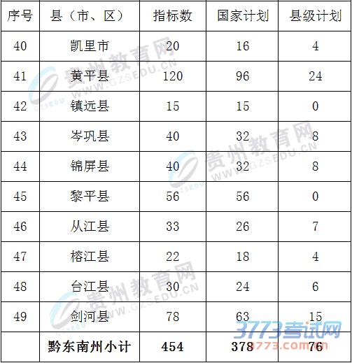 [组图]2016贵州特岗教师招聘岗位计划教师指标分配表