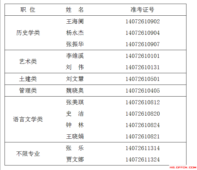 注:报考不限专业岗位的赵亚芳未参加体检、政审,取消其聘用资格。