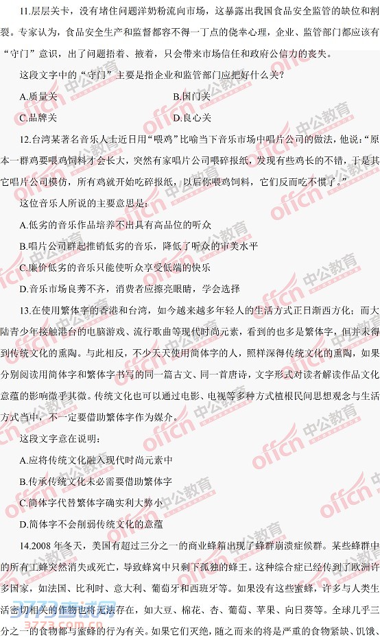 [组图]2014河南公务员考试行测真题-言语理解与表达
