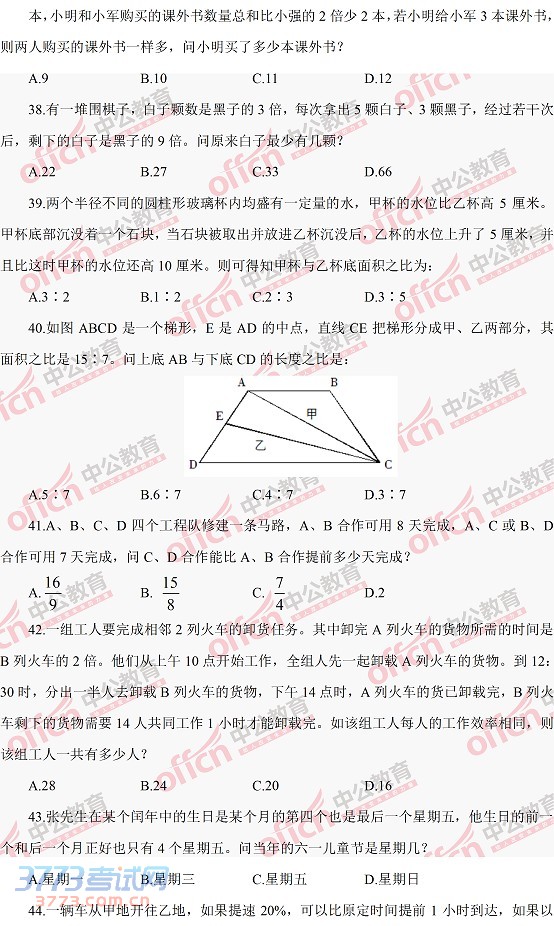 [组图]2014河南公务员考试行测真题-数量关系