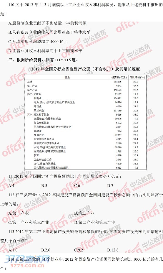 [组图]2014河南公务员考试行测真题-资料分析