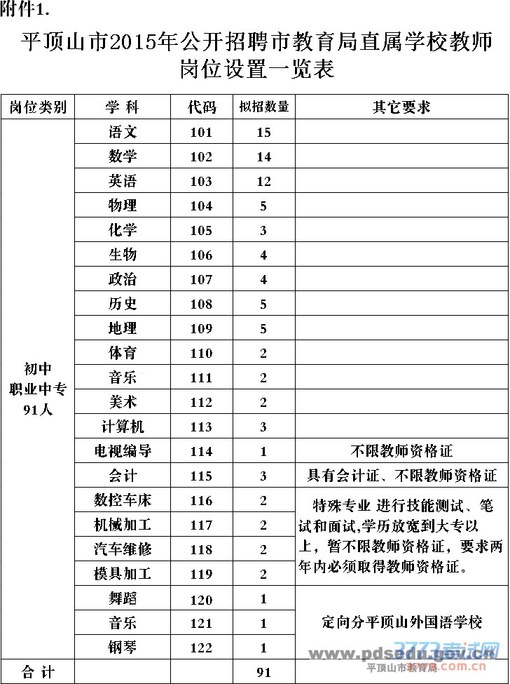 [图文]平顶山市2015年公开招聘市教育局直属学校教师岗位表