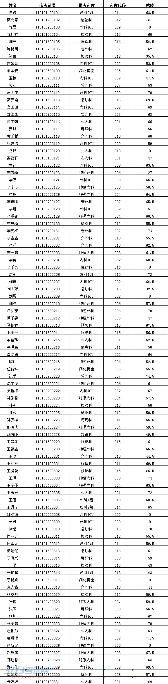 [图文]2014年黑龙江鹤岗市人民医院招聘笔试成绩单