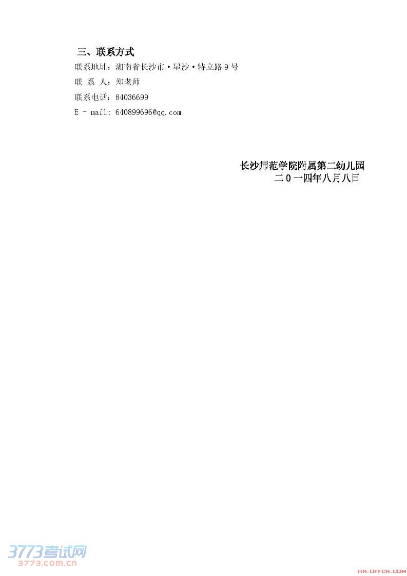[组图]长沙师范学院附属第二幼儿园2014年招聘公告