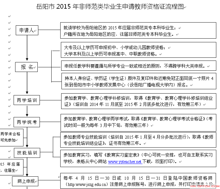 [组图]2015年湖南岳阳市非师范类毕业生申请教师资格证流程图