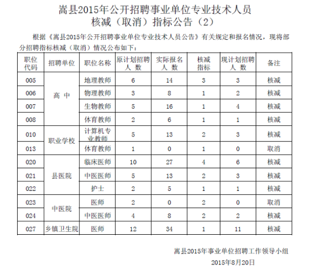 [图文]洛阳市嵩县2015年招聘事业单位核减(取消)指标公告(2)