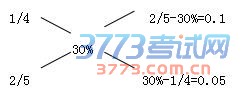 中公解析:音乐系男生占总人数的1/4,美术系男生占总人数的2/5,应用十字交叉法: