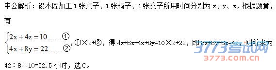 中公解析:假设餐桌都可以坐12人,则可容纳12×28=336人同时就餐,实际容纳332人,则该餐厅有10人桌(336-332)÷(12-10)=2张,选A。