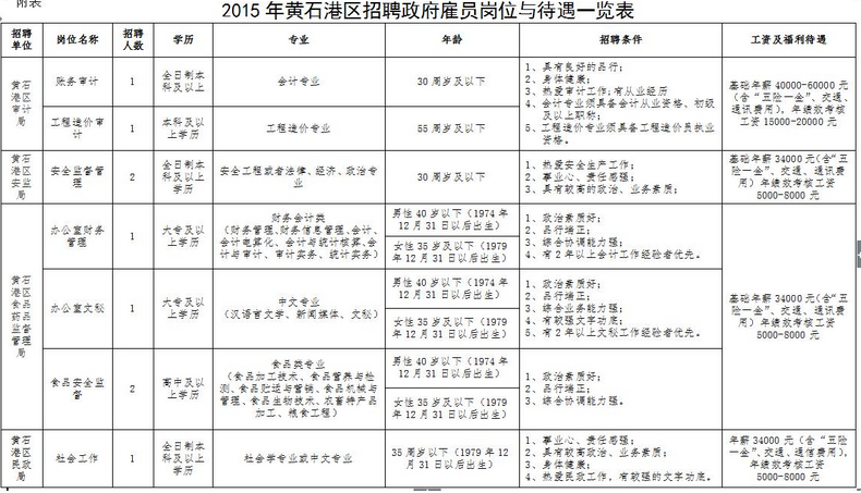 [图文]2015黄石港区政府雇员招聘岗位与待遇一览表