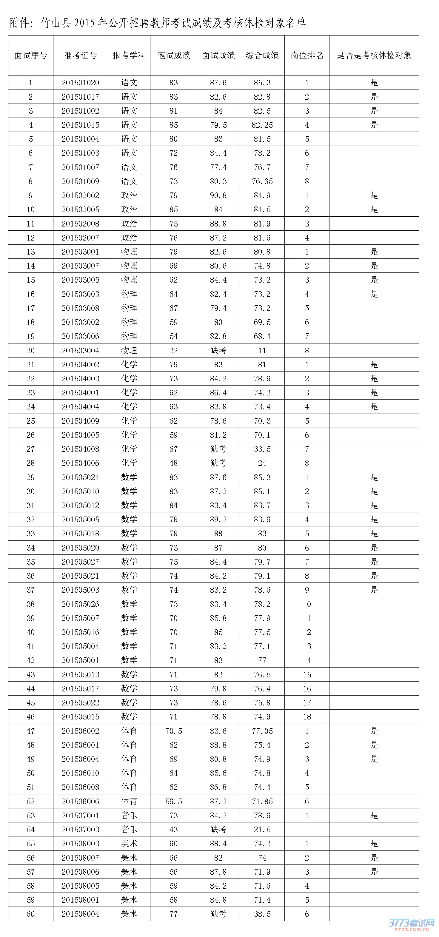[图文]湖北竹山县2015年招聘初中教师成绩及考核体检公告