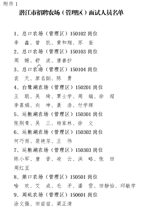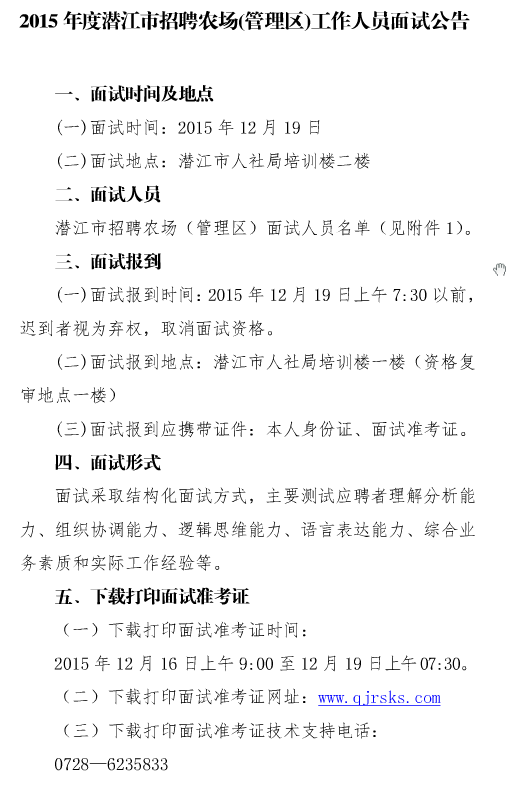 [组图]2015湖北潜江市农场(管理区)人员招聘面试公告