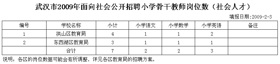 [图文]武汉市2009年招聘小学骨干教师岗位人数(社会人才)