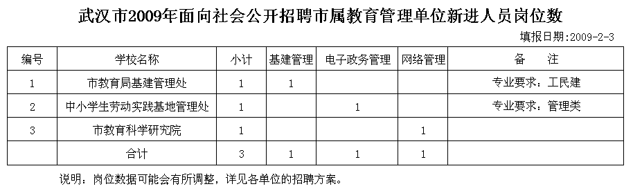 [图文]武汉市2009年面向社会公开招聘市属教育管理单位新进人员岗位数