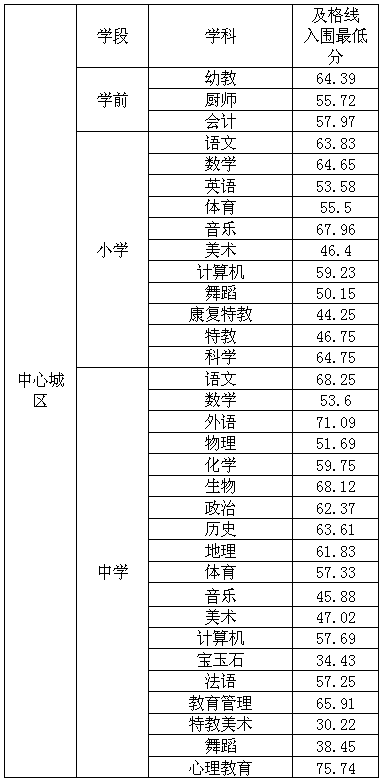 说明:各远城区中小学教师招聘考试入围及格线业已确定,由各远城区教育局公示。