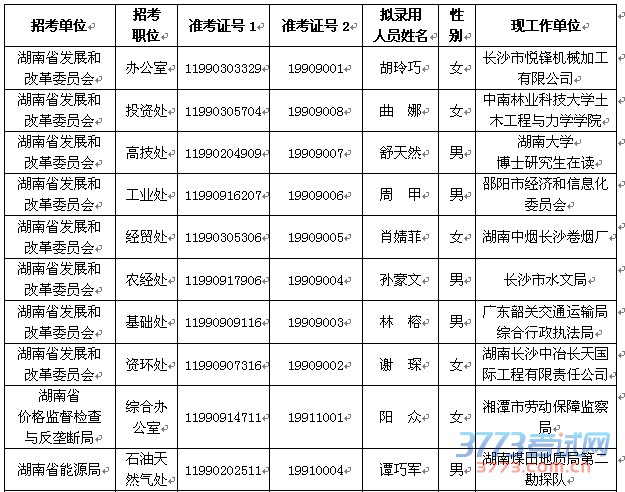 [组图]2015年湖南省发展和改革委员会公务员拟录用名单公示