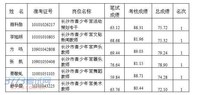 共青团长沙市委所属事业单位公开招聘,经报名、资格初审、笔试、资格复审、考核等程序,以下6人进入体检,现公示如下。