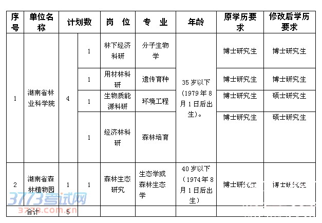 2014年湖南省林业厅所属事业单位招聘修改部分岗位招聘条件并延长报名时间公告