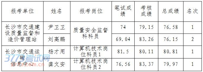 长沙市交通运输局所属事业单位面向社会公开招聘工作人员,经报名、资格初审、笔试、资格复审、面试等程序,以下4人进入体检,现公示如下。请进入体检的考生保持通讯畅通。