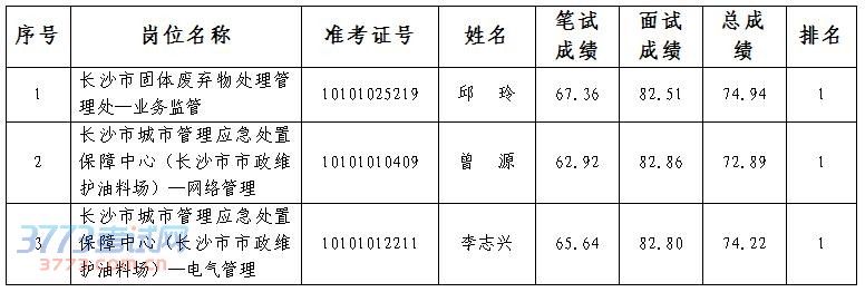 长沙市城市管理和行政执法局所属事业单位2014年公开招聘经报名、资格初审、笔试、资格复审、考核(结构化面试)等程序,以下3人进入体检,现将进入体检人员名单及体检相关事项通知如下: