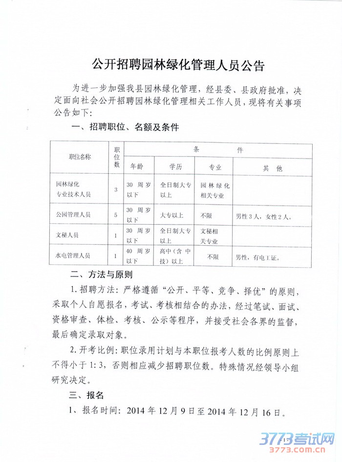 [组图]2014年湖南汝城县招聘园林绿化管理人员公告