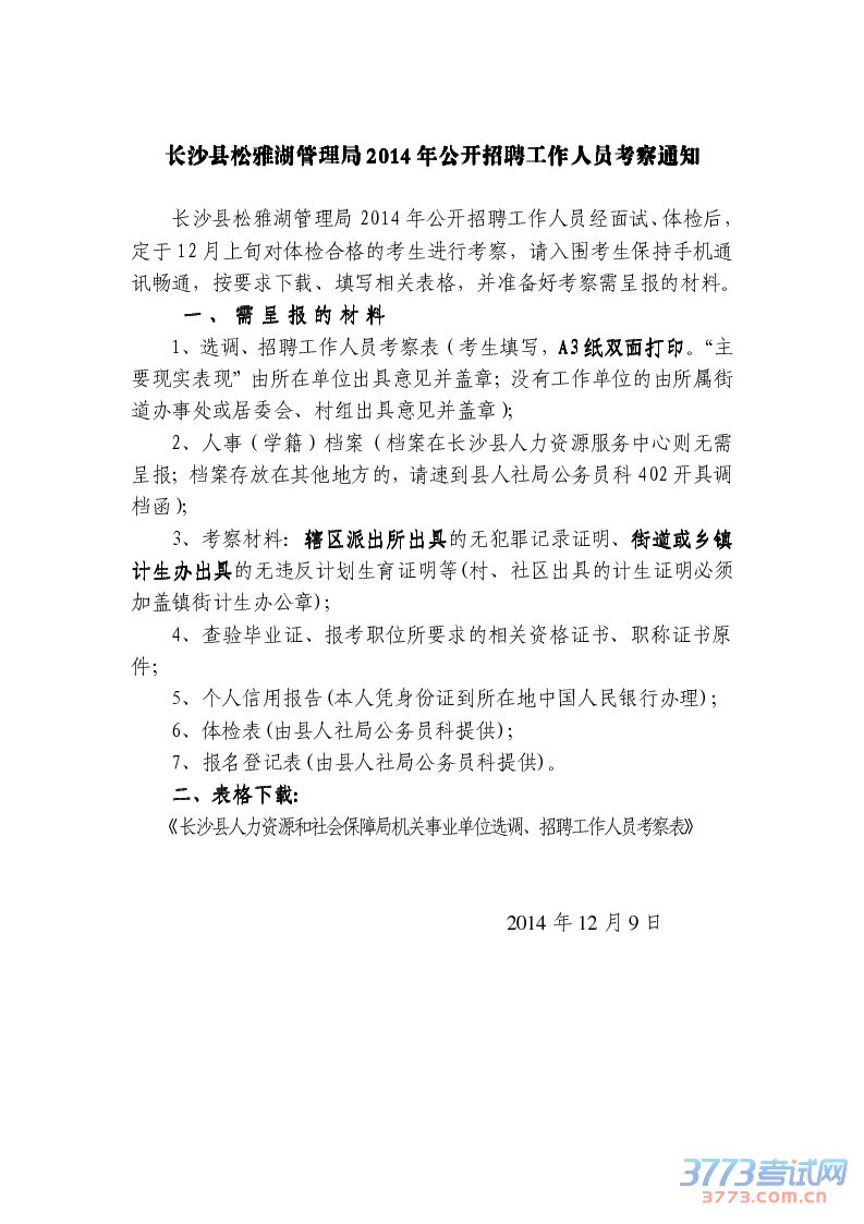 [图文]湖南长沙县松雅湖管理局2014年招聘考察通知