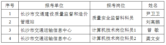 [图文]湖南长沙市交通运输局所属事业单位2014年招聘拟录取名单