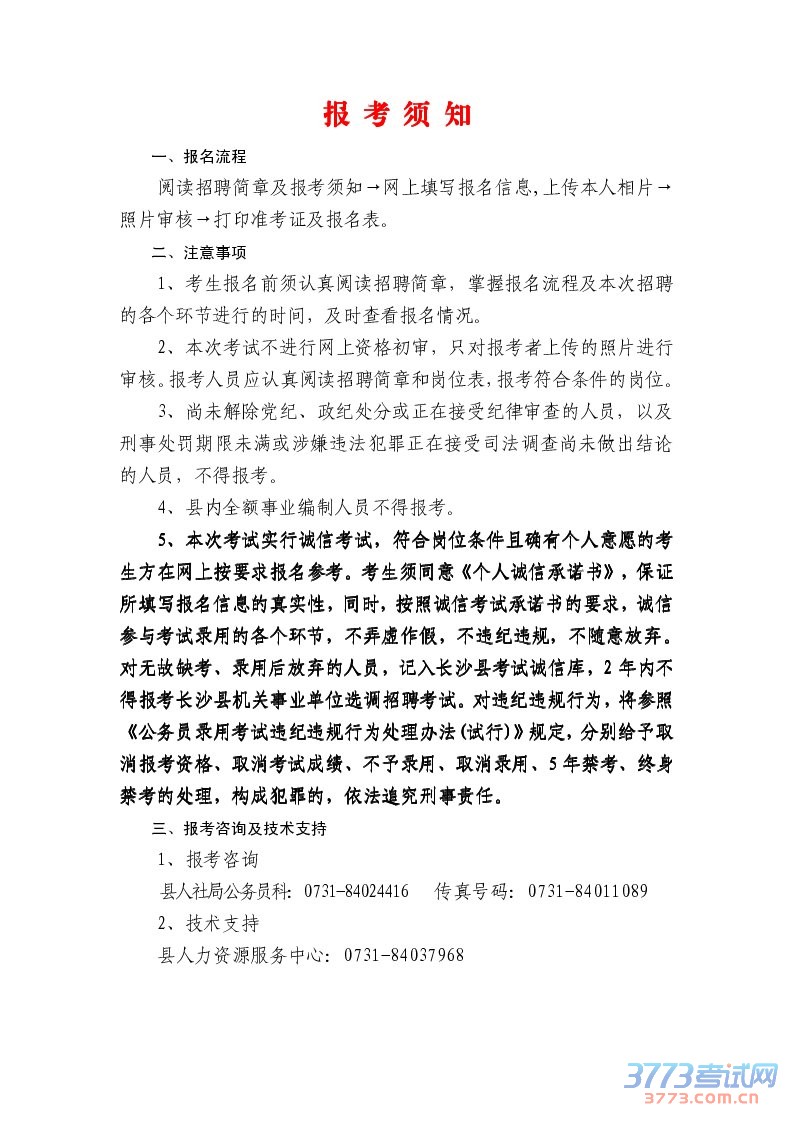 [图文]2015年1月湖南长沙县机关事业单位招聘报考须知