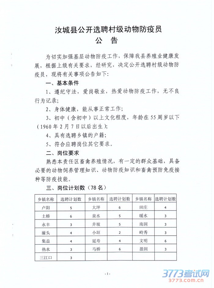 [图文]2015湖南汝城县村级动物防疫员选聘公告