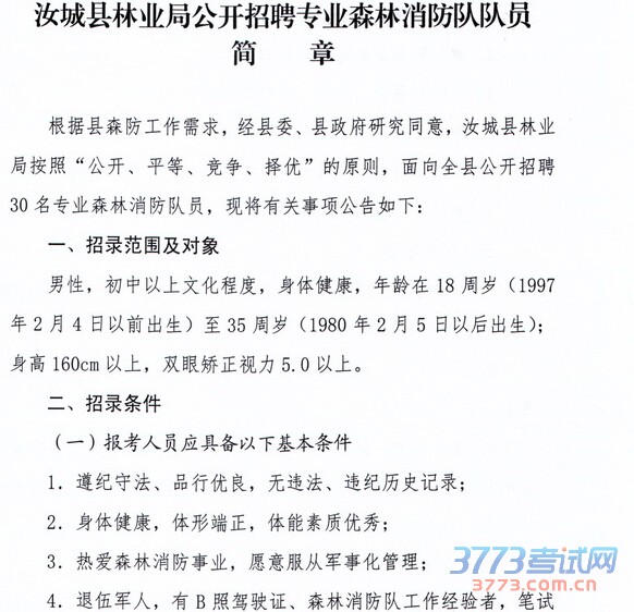 [图文]2015年湖南株洲市汝城县林业局招聘专业森林消防队员简章