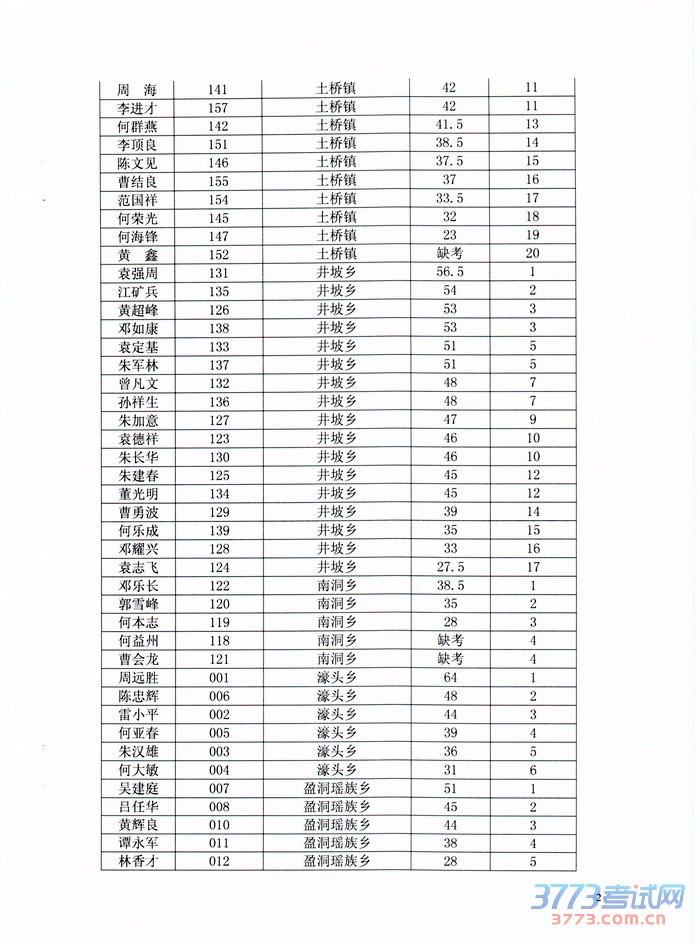 [组图]湖南汝城县村级动物防疫员2015选聘笔试成绩公示