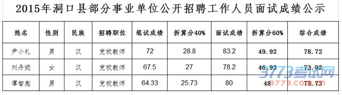 [图文]2015湖南洞口县事业单位招聘面试成绩公示