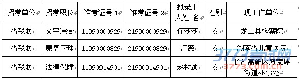 [图文]湖南省残疾人联合会2015年拟录用公务员名单公示