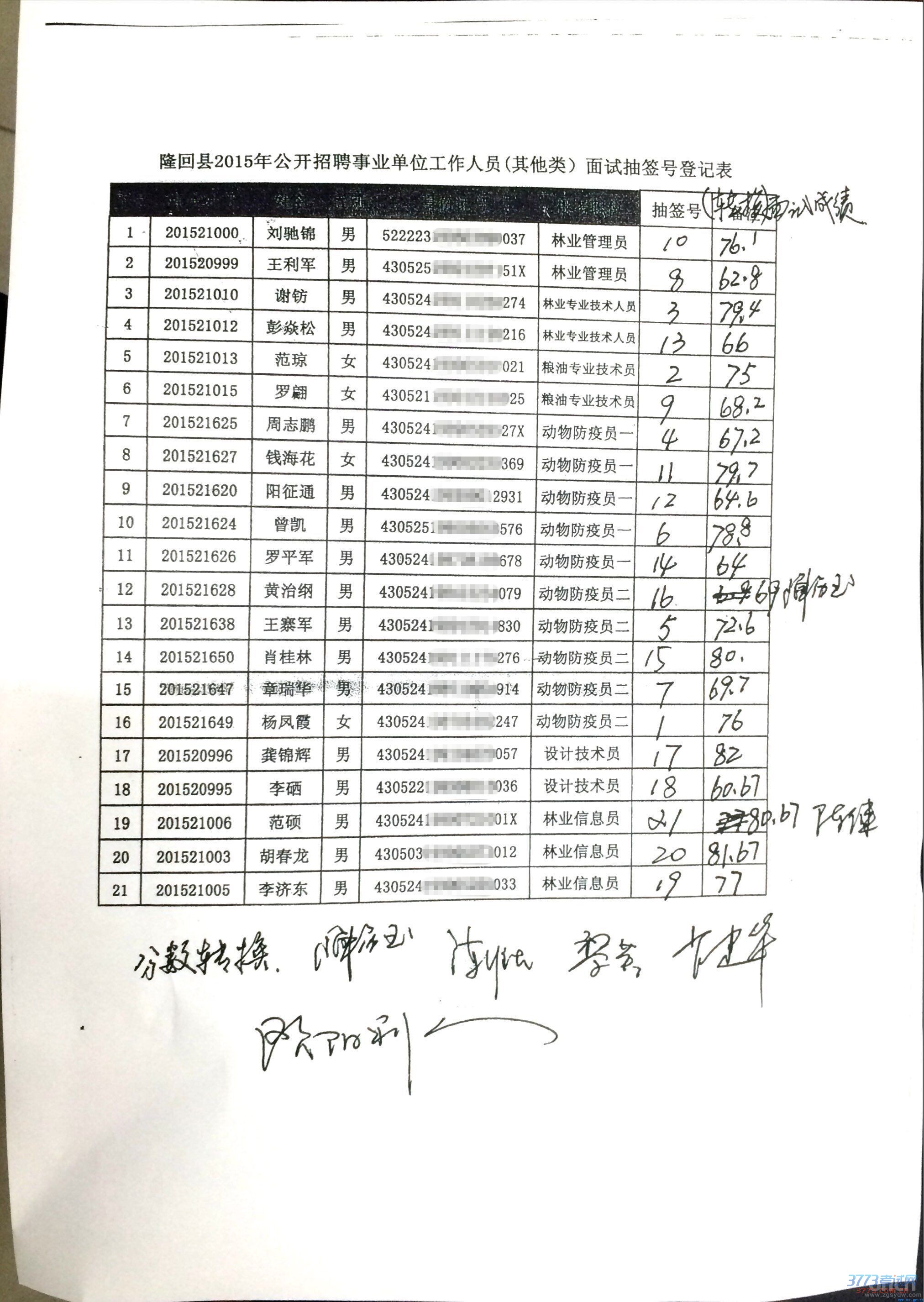 [图文]2015湖南邵阳隆回县事业单位招聘(其他类)面试成绩公布