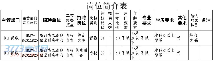 [图文]2014年中共宿迁市委组织部宿迁市工商联招聘事业单位岗位表