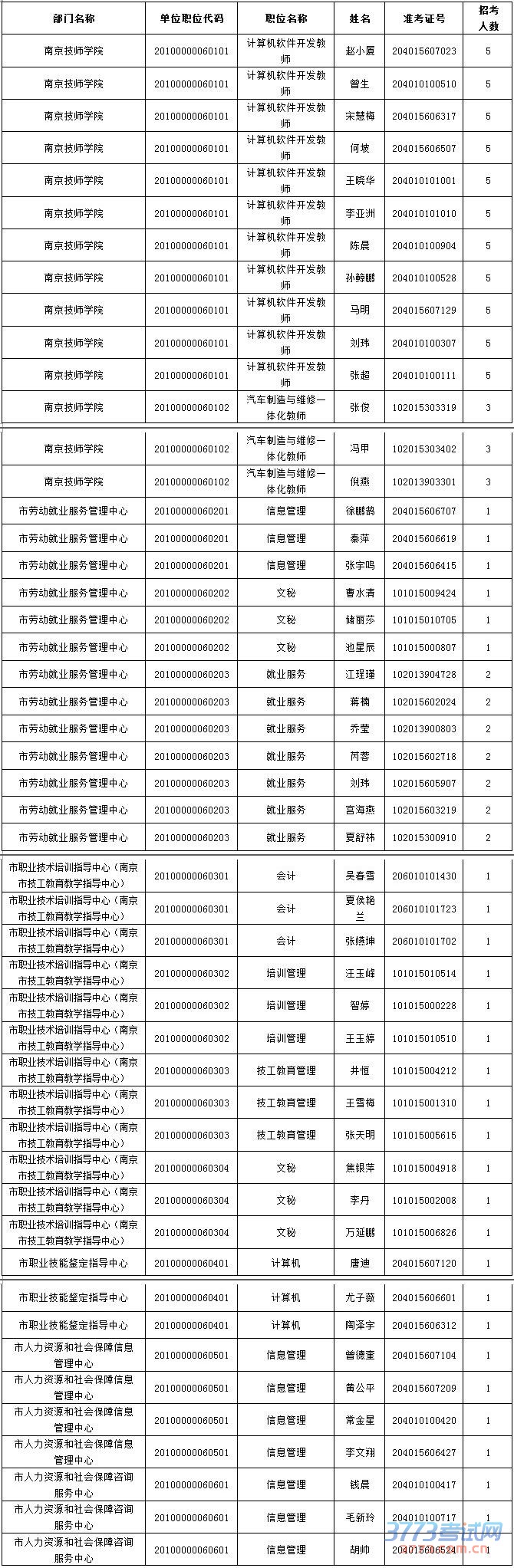 [图文]江苏南京事业单位2014下半年招聘资格复审名单