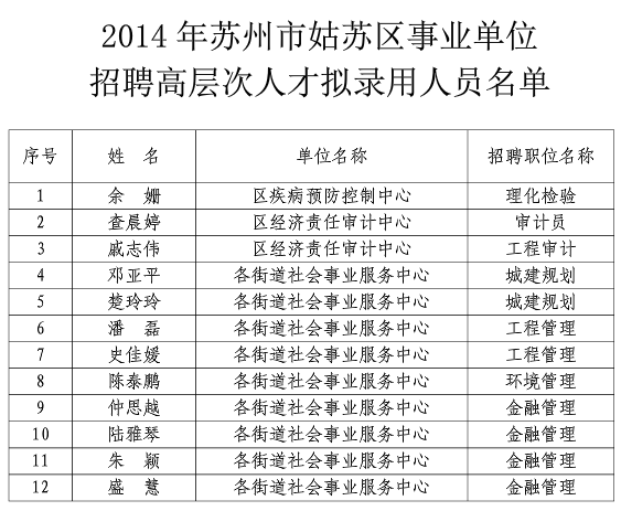 [组图]2014江苏苏州市姑苏区事业单位高层次人才拟录名单公示