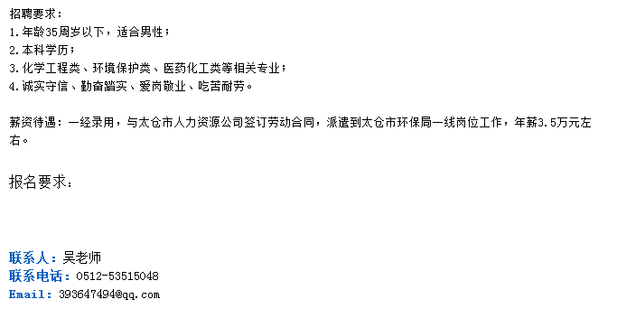 [图文]江苏苏州太仓市环保局2015年招聘简章