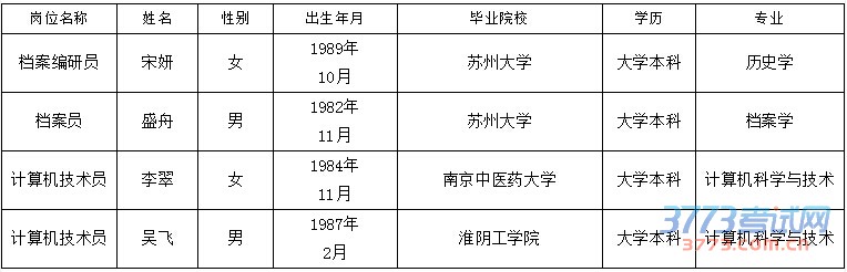 [图文]2015江苏苏州市工商档案管理中心招聘录用名单公示