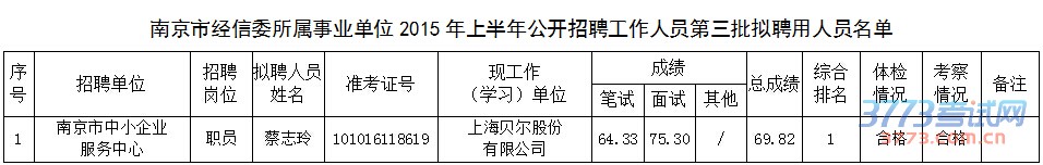 [图文]南京市经信委所属事业单位2015年上半年第三批拟聘用名单